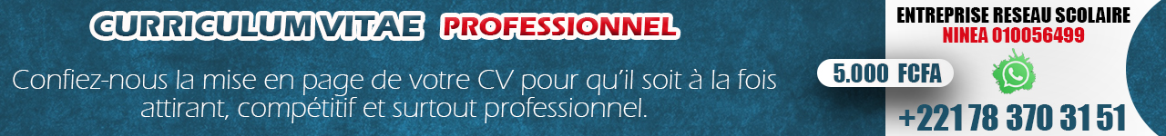 POUR VOS ANNONCES ET PUBLICITÉS Email : projetreseauscolaire@gmail.com Tel. +221 78 370 31 51