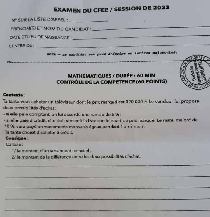 Épreuves et Corrigés du Brevet de Fin d’Études Moyennes BFEM 2024 Sénégalais