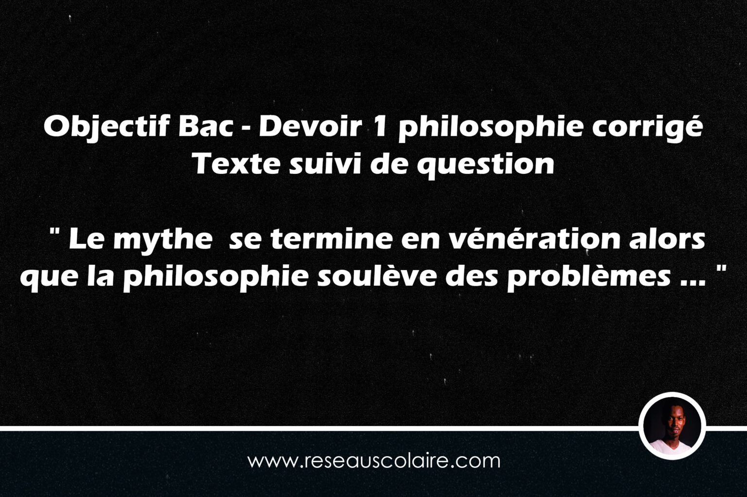 Objectif Bac – Devoir philosophie corrigé TSQ » Le mythe se termine en vénération alors que la philosophie soulève des problèmes … «