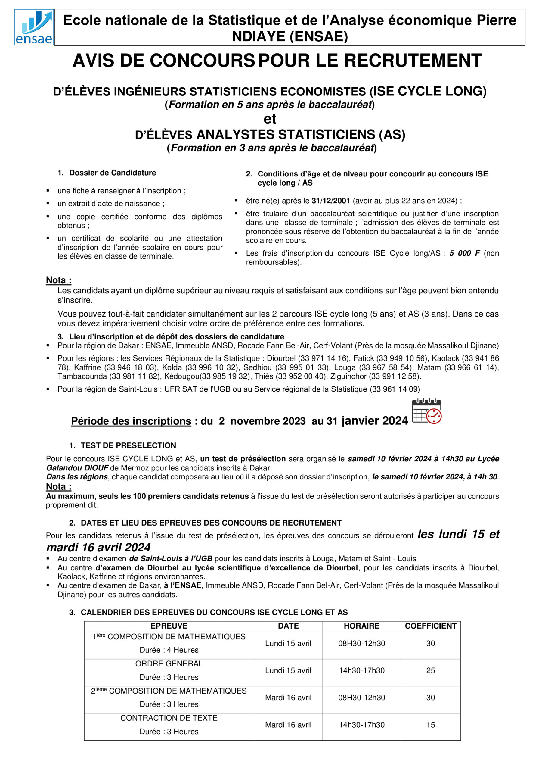 ENSAE_AVIS DE CONCOURS ISE CYCLE LONG AS 2024