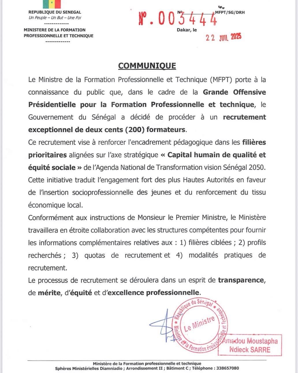 au centre régional de Formation en santé de Kolda du Ministère de la Santé et de l’Action Sociale.