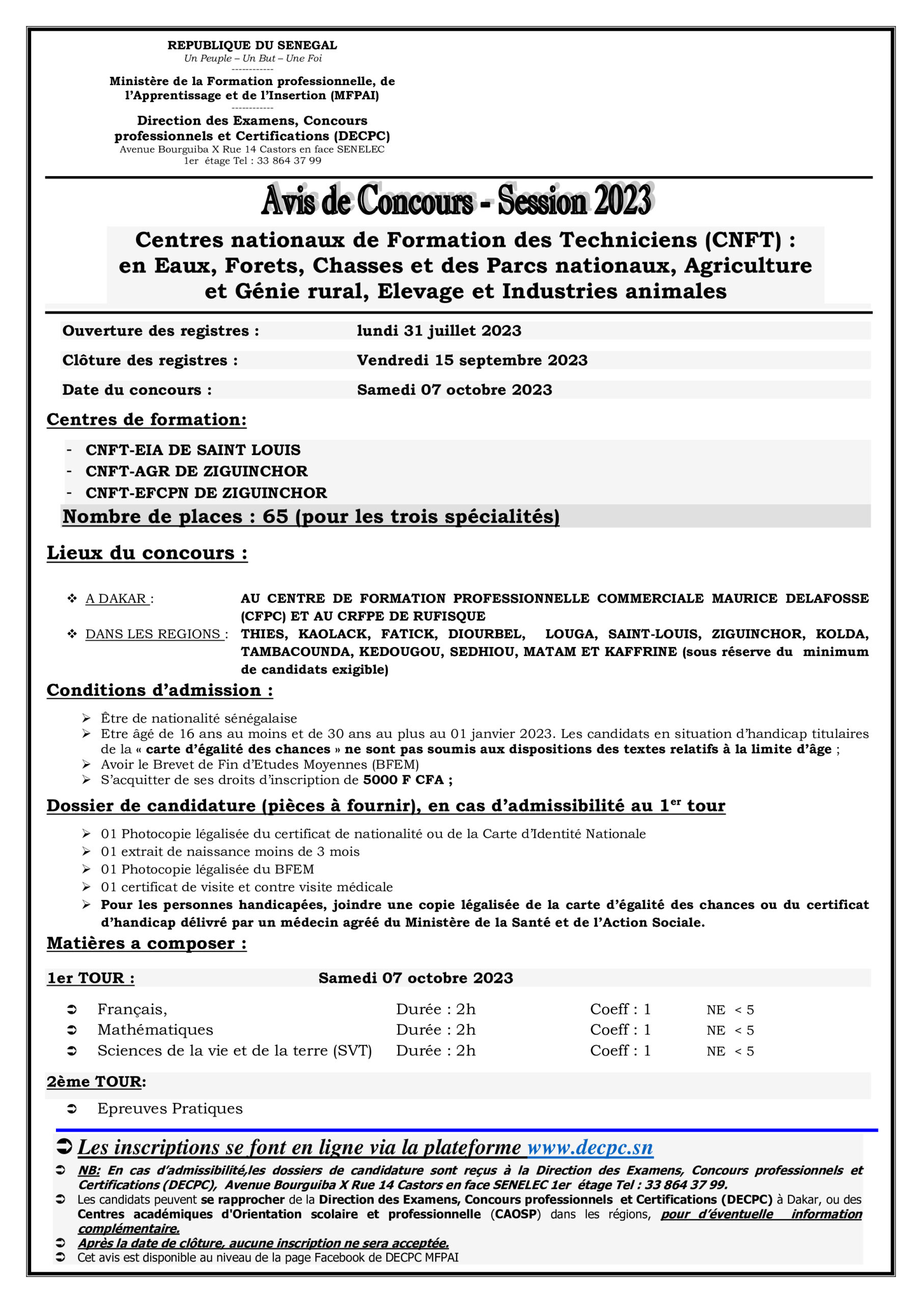 31. CONCOURS TECHNICIEN EAUX, FORETS, CHASSES ET PARCS NATIONAUX – AGRICULTURE ET GENIE RURAL, ELEVAGE ET INDUSTRIES ANIMALES
