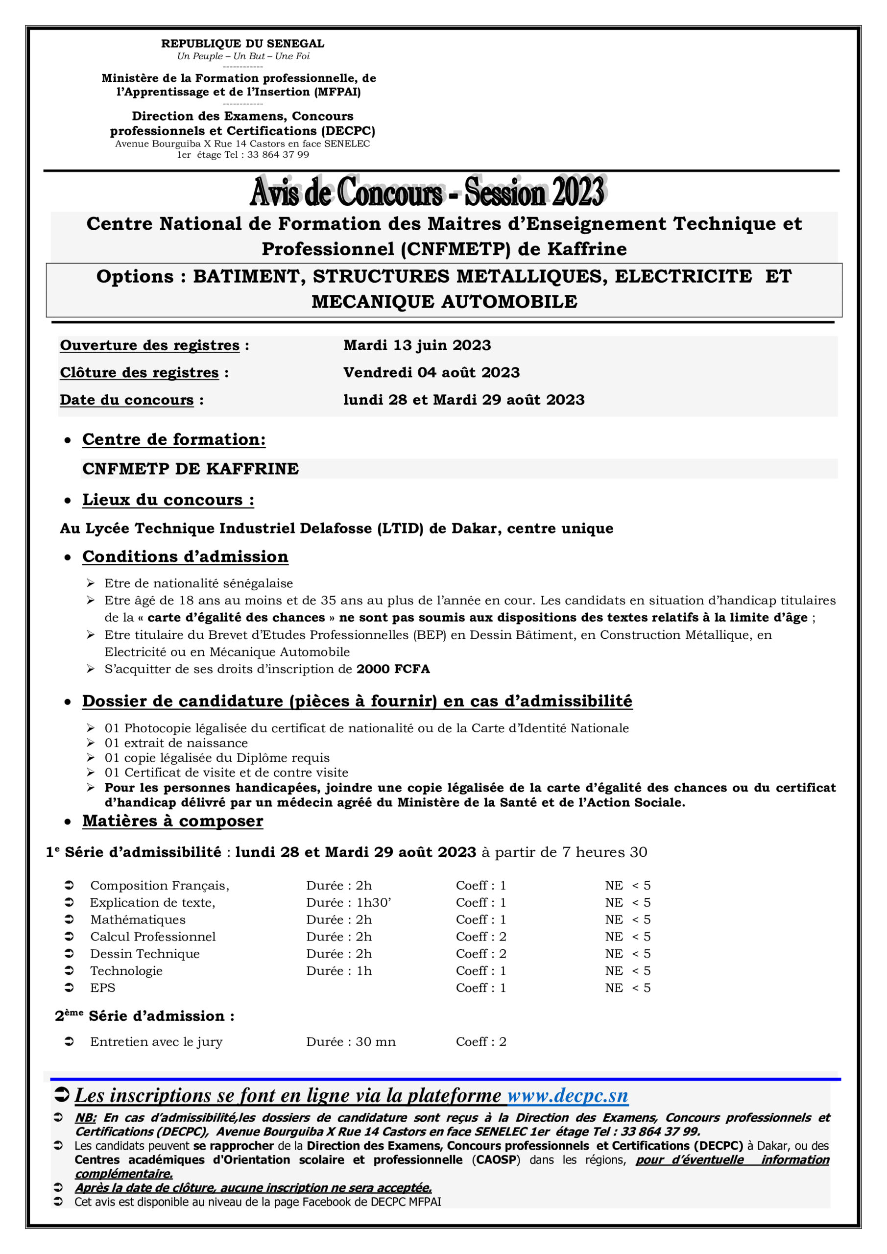 à l’Université Cheikh Anta Diop de Dakar.