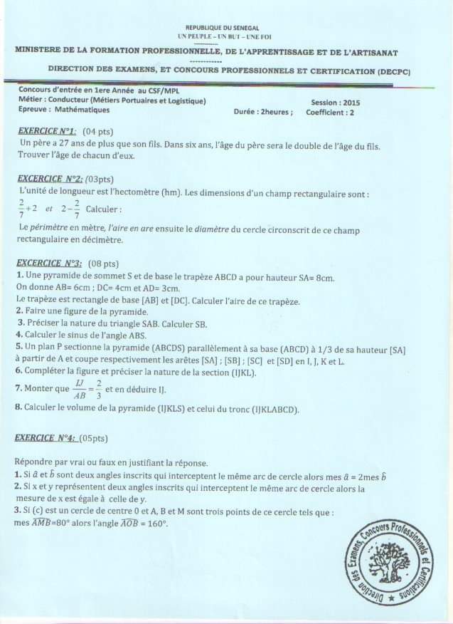 Epreuves Concours du Centre de Formation aux Métiers Portuaires et à la Logistique CFMPL