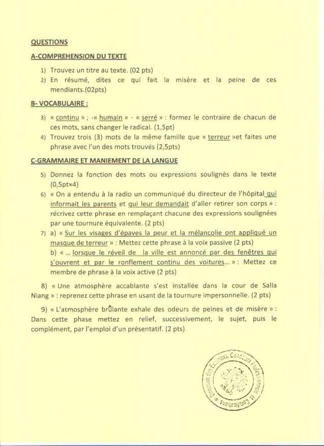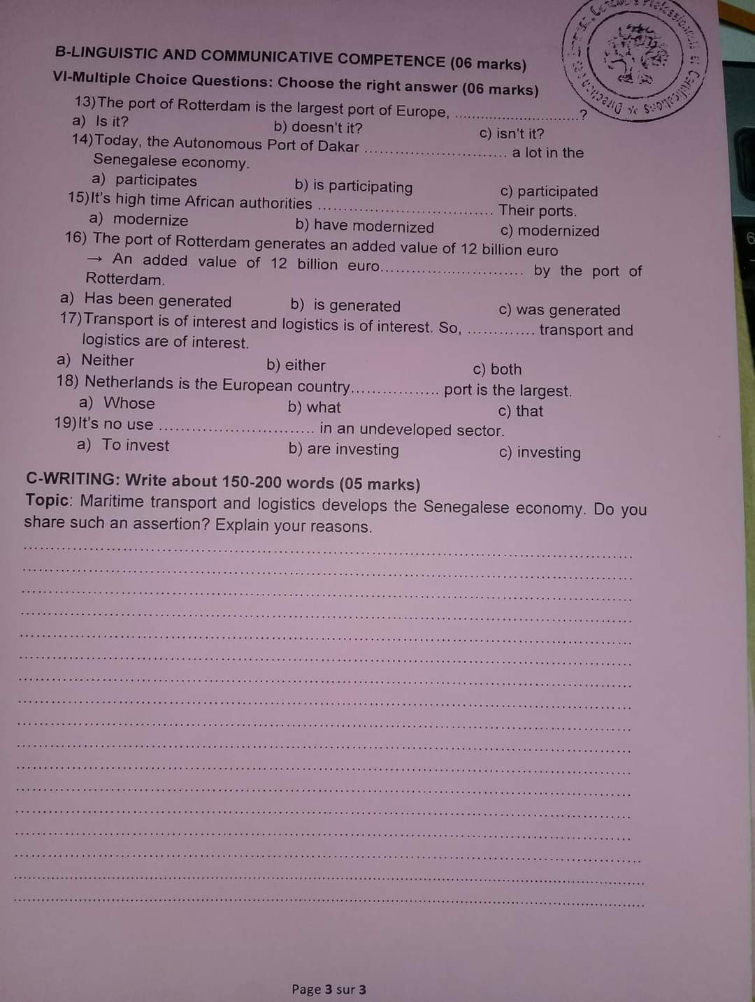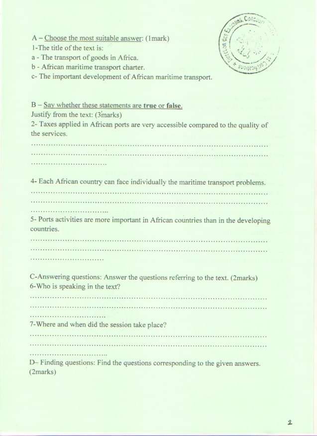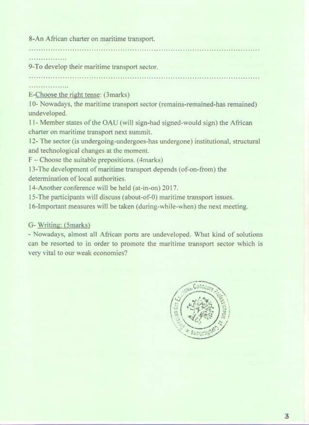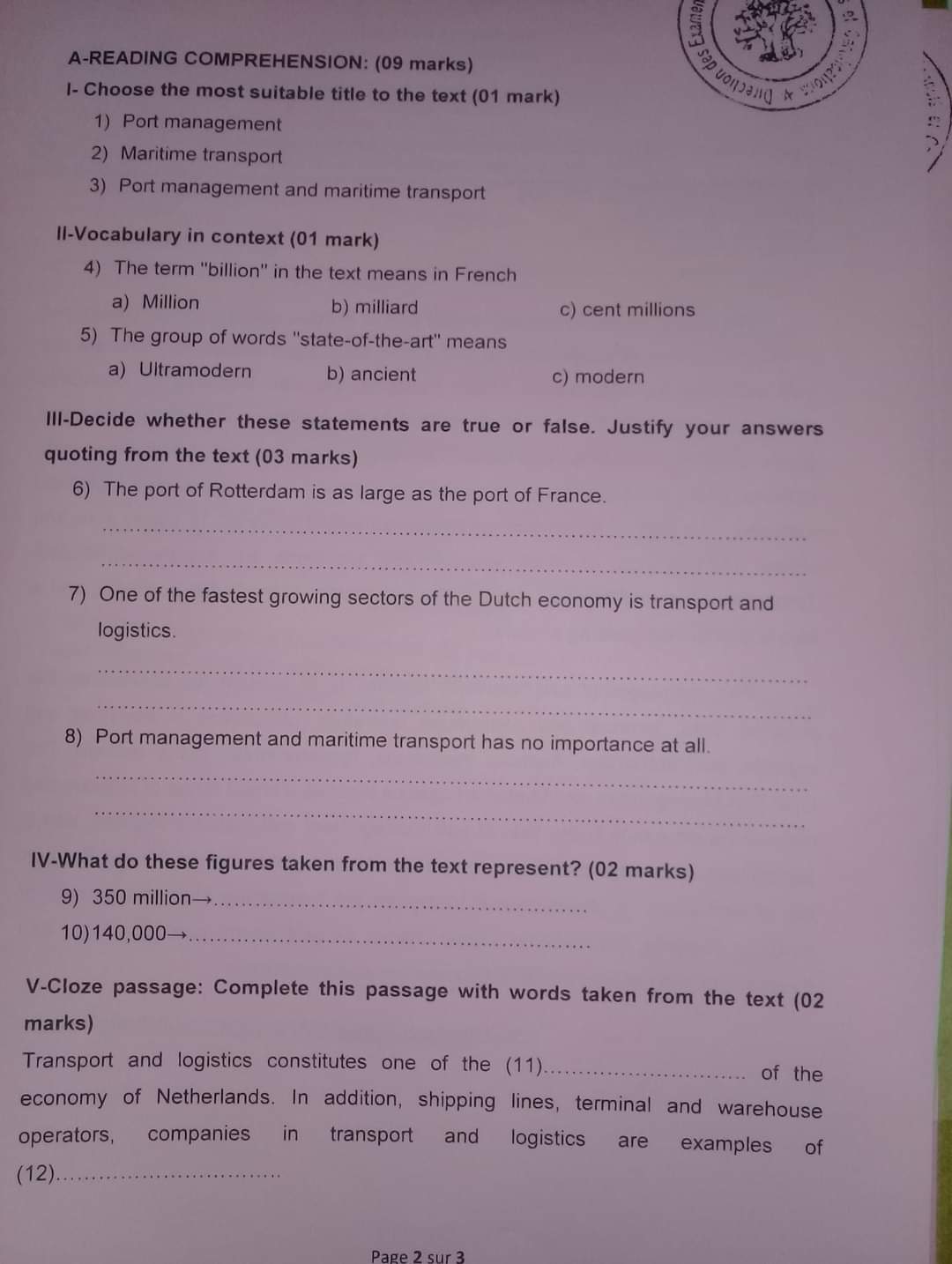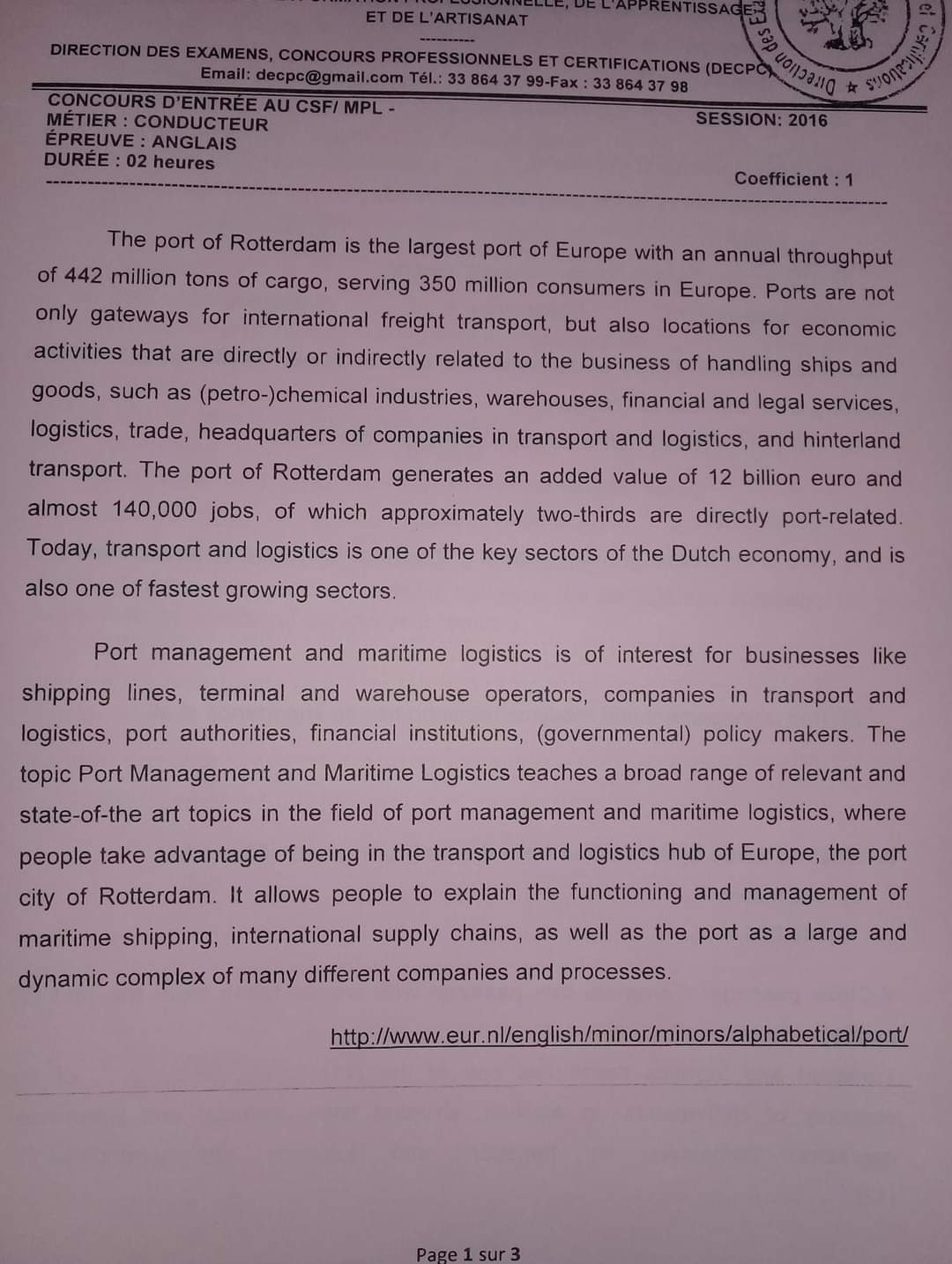 Reading: Epreuves Concours du Centre de Formation aux Métiers Portuaires et à la Logistique CFMPL