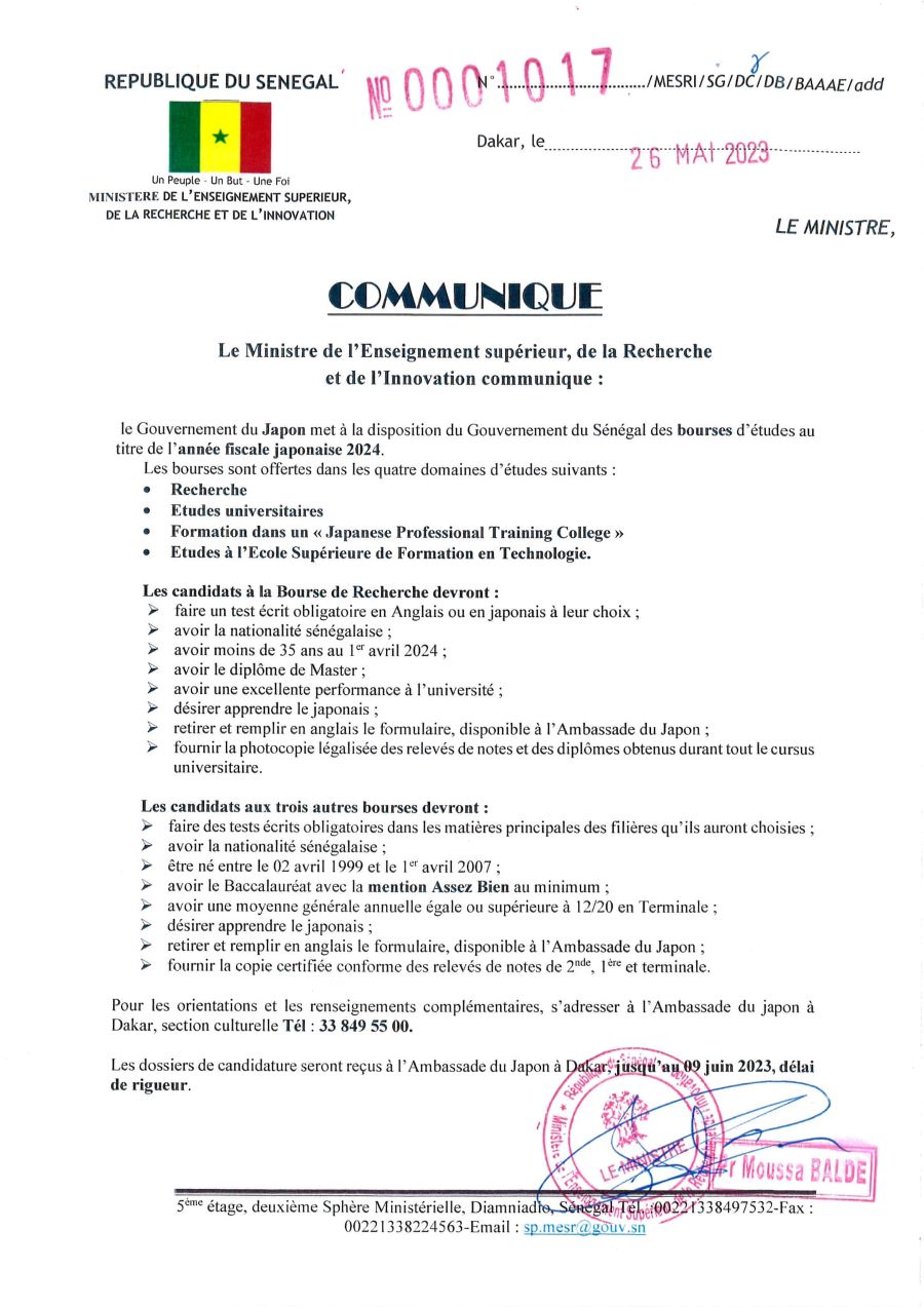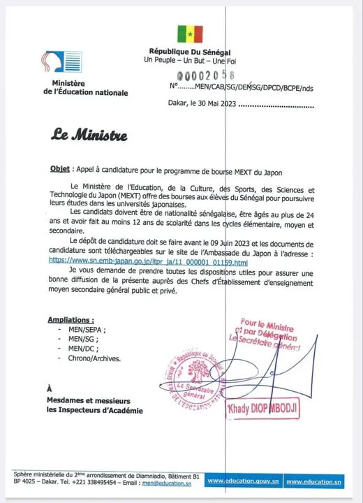Appel à candidature pour le programme de bourse MEXT du Japon