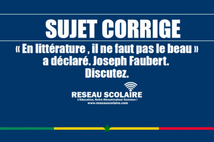 Sujet Corrigé : « En littérature , il ne faut pas le beau » a déclaré. Joseph Faubert. Discutez.