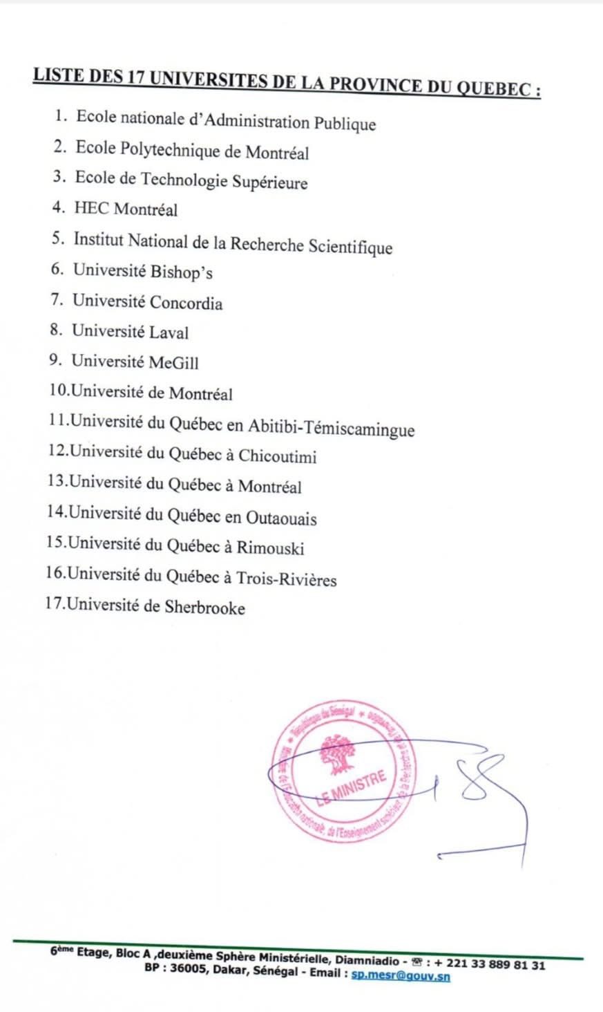 - [ ] formulaire dûment rempli et signé (disponible à la Direction des Bourses ou sur le site : www.ambsenecanada.org) ;