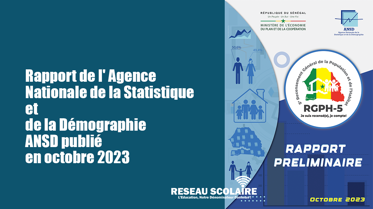 Découvrez le nouveau Rapport de l’ Agence Nationale de la Statistique et de la Démographie – ANSD publié en octobre 2023