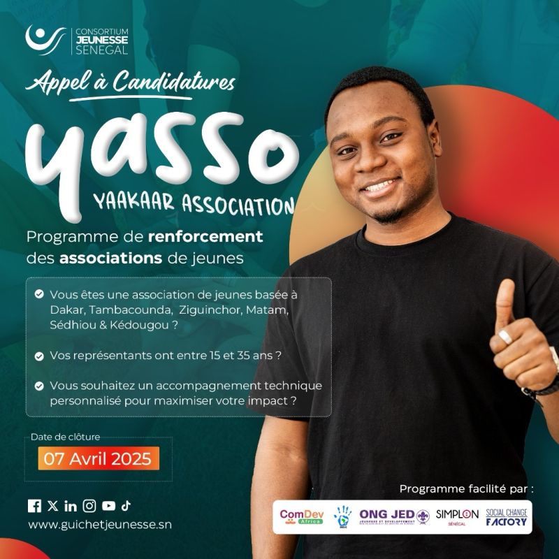 Consortium Jeunesse Sénégal recrute la cohorte 2 du programme YASSO pour renforcer les capacités des associations de jeunes