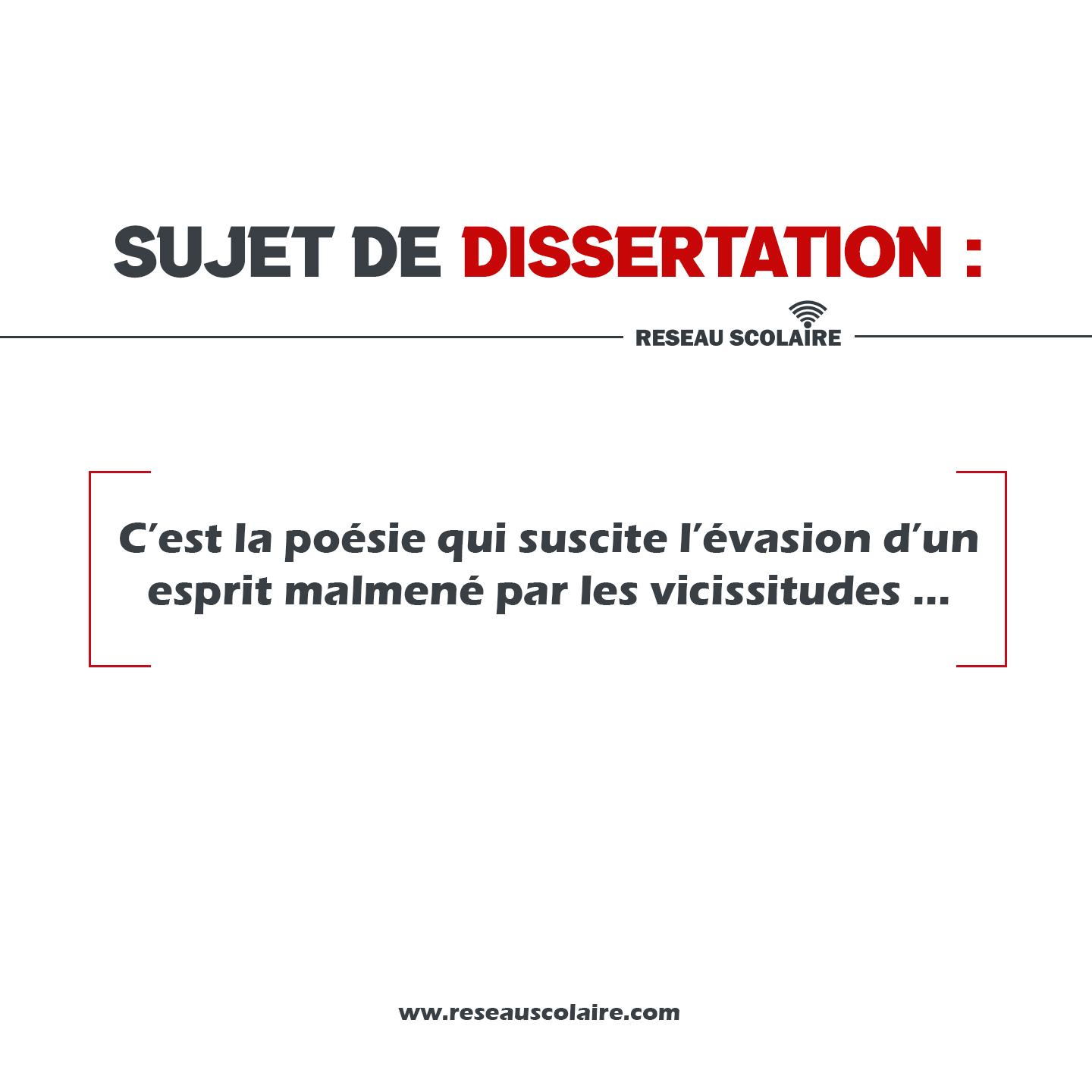Dissertation : C’est la poésie qui suscite l’évasion d’un esprit malmené par les vicissitudes …