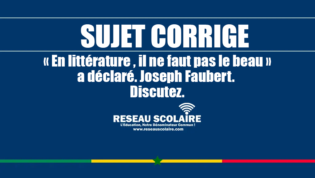 Sujet Corrigé : « En littérature , il ne faut pas le beau » a déclaré. Joseph Faubert. Discutez.