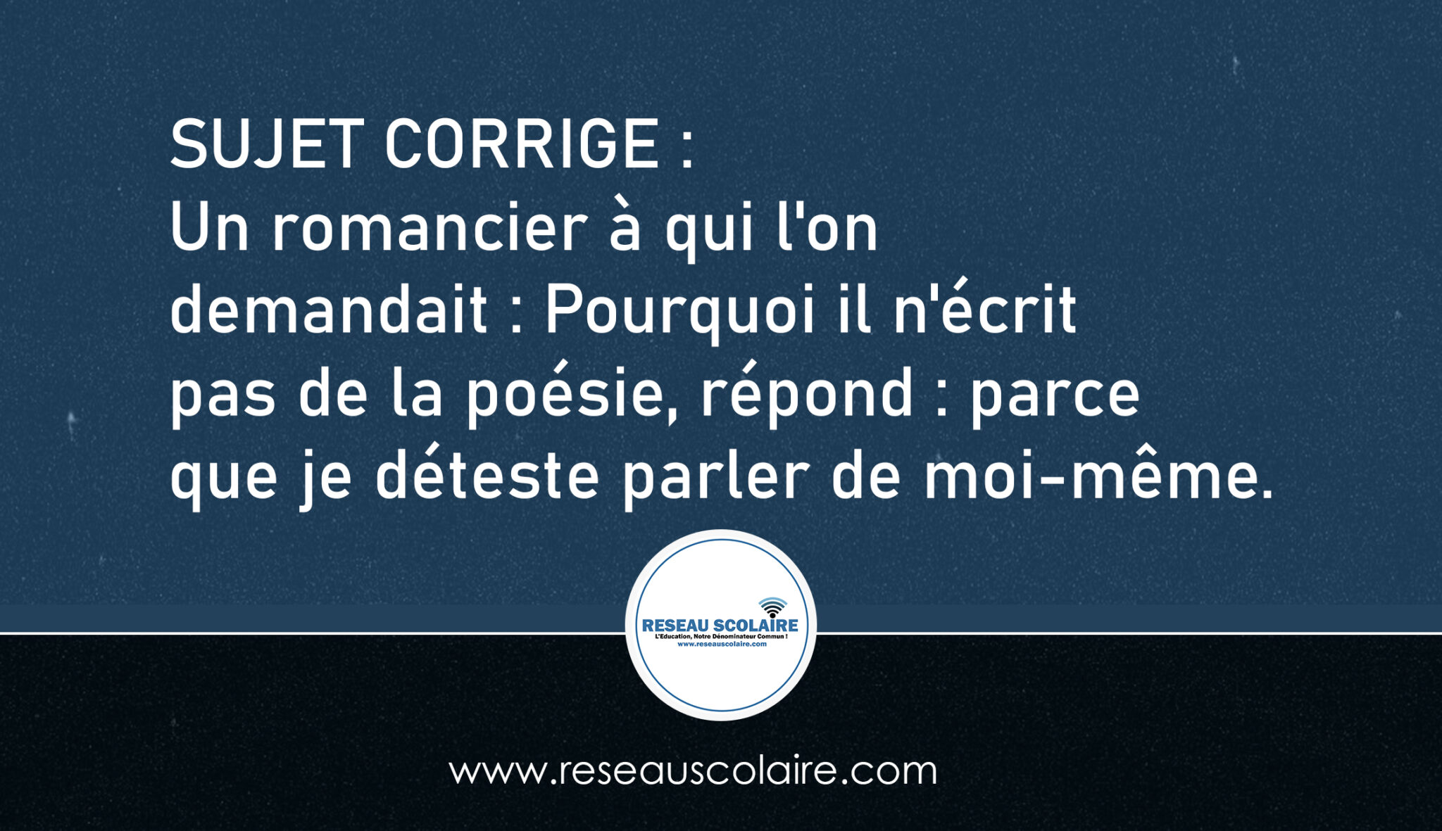 Sujet corrigé : Pourquoi il n’écrit pas de la poésie, répond : parce que je déteste parler de moi-même.