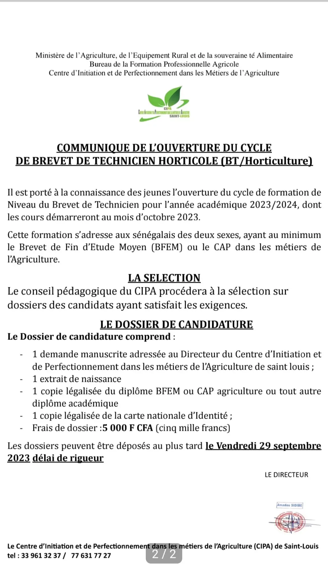 au centre régional de Formation en santé de Kolda du Ministère de la Santé et de l’Action Sociale.