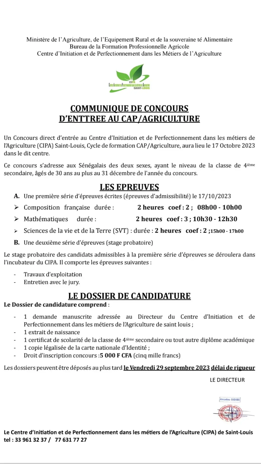 Ouverture du concours d’entrée à l’ENTSS – Session 2026