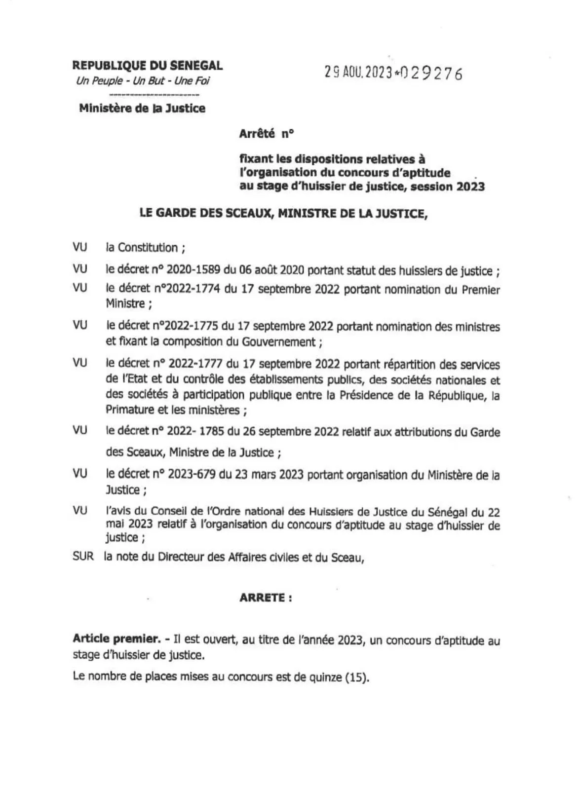 Reading: Concours d’aptitude au stage d’huissier de justice, session 2023