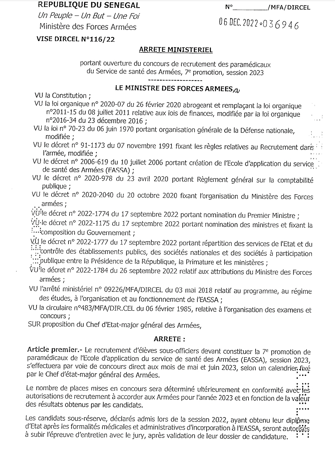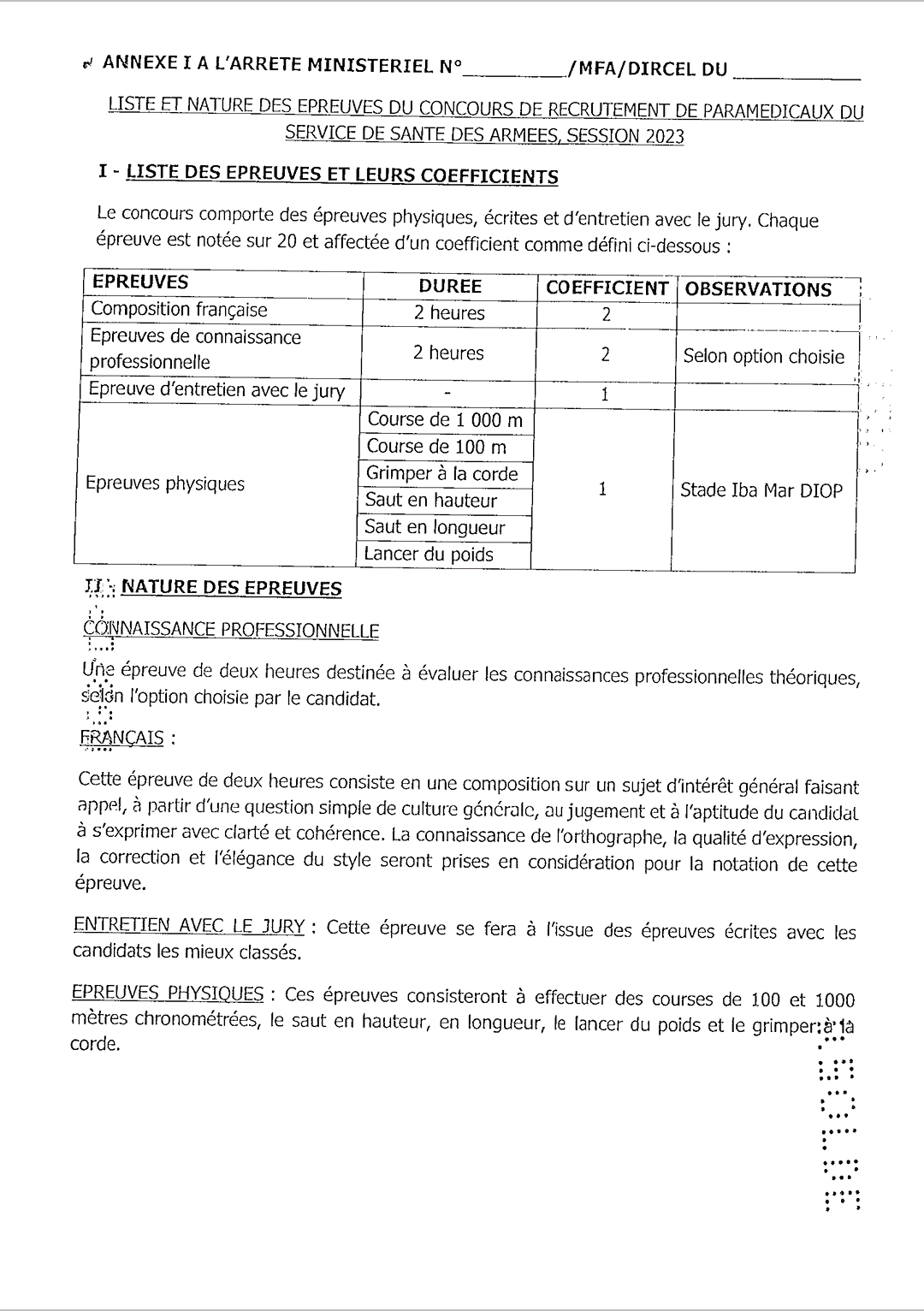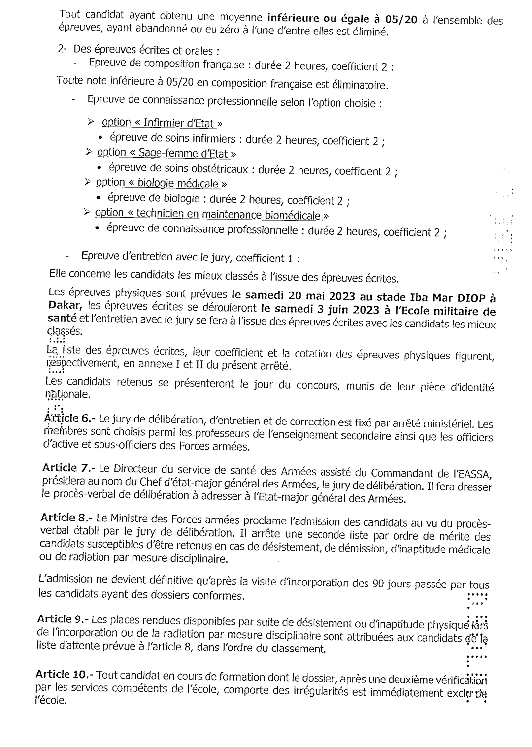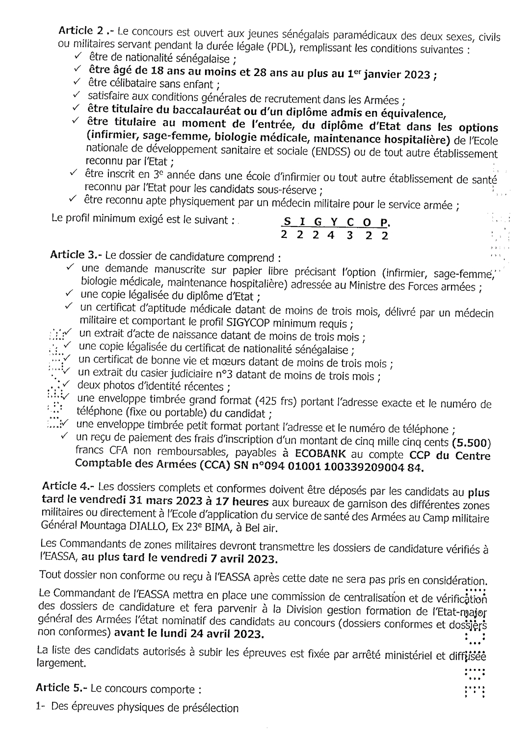 Concours de recrutement d’élèves sous-officiers devant constituer la 7e promotion de paramédicaux de l’Ecole d’application du service de santé des Armées (EASSA), session 2023