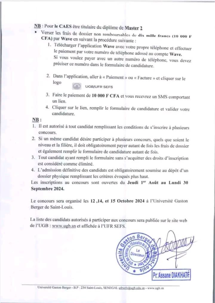 - Dates du concours : Les 12, 14, et 15 octobre 2024 à l’Université Gaston Berger de Saint-Louis