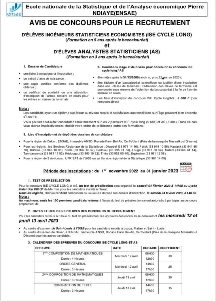 Concours d’entrée à l’ENSAE 2023 Cycle long, ISE option analystes statisticiens