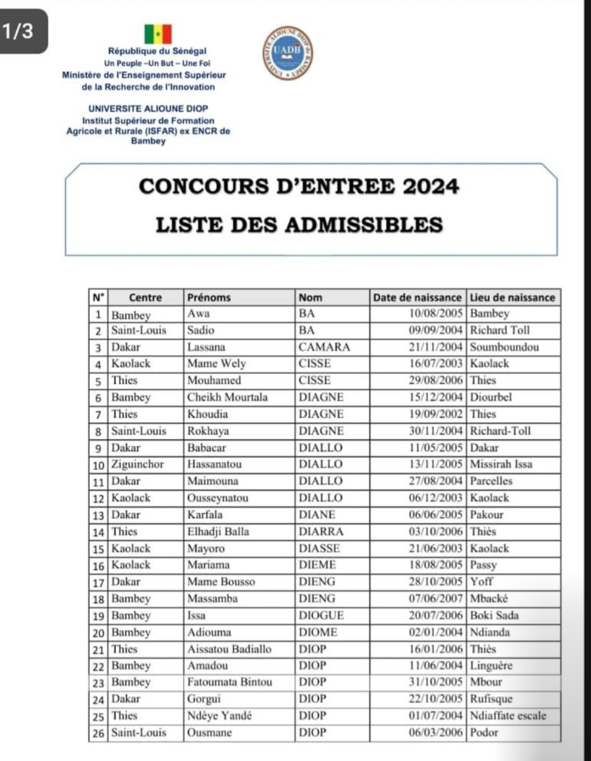 au centre régional de Formation en santé de Kolda du Ministère de la Santé et de l’Action Sociale.