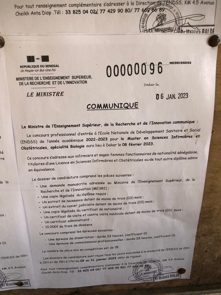au centre régional de Formation en santé de Kolda du Ministère de la Santé et de l’Action Sociale.