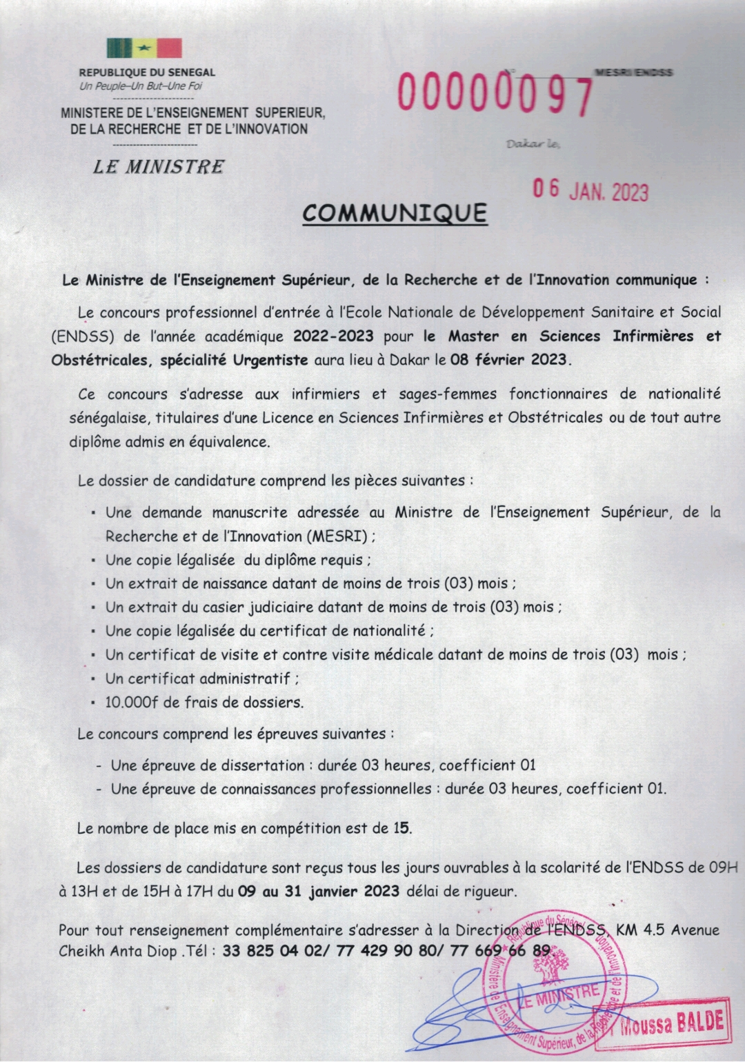 au centre régional de Formation en santé de Kolda du Ministère de la Santé et de l’Action Sociale.