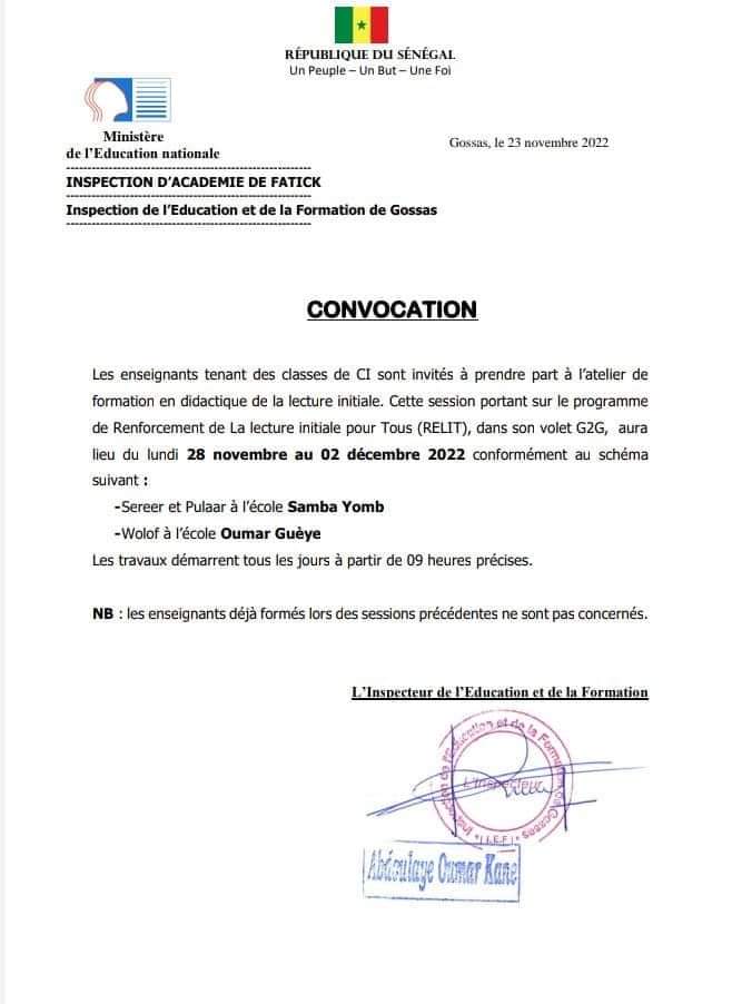 IEF de Gossas / Programme de renforcement de la lecture initiale