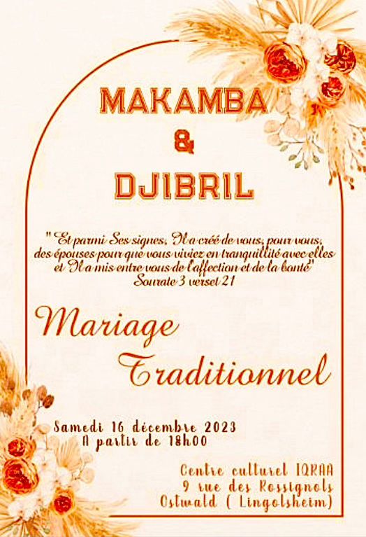 Nous vous remercions du fond du cœur pour votre présence et participation à notre mariage traditionnel au Centre Socio-culturel du quartier de Lingolsheim de la ville de Strasbourg en France.