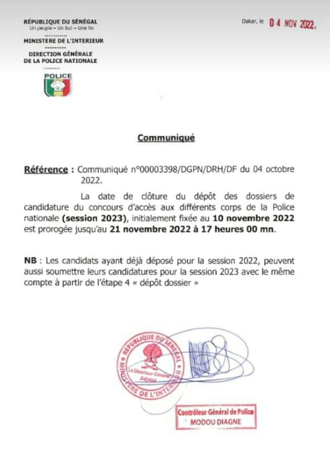 Reading: Prolongation de la date de clôture pour le Concours de la Police