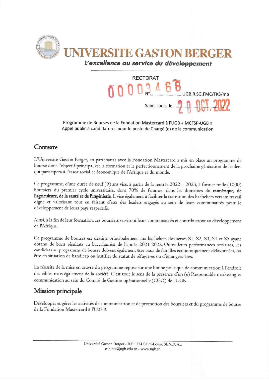 Reading: Recrutement d’un chargé de communication Mastercard UGB