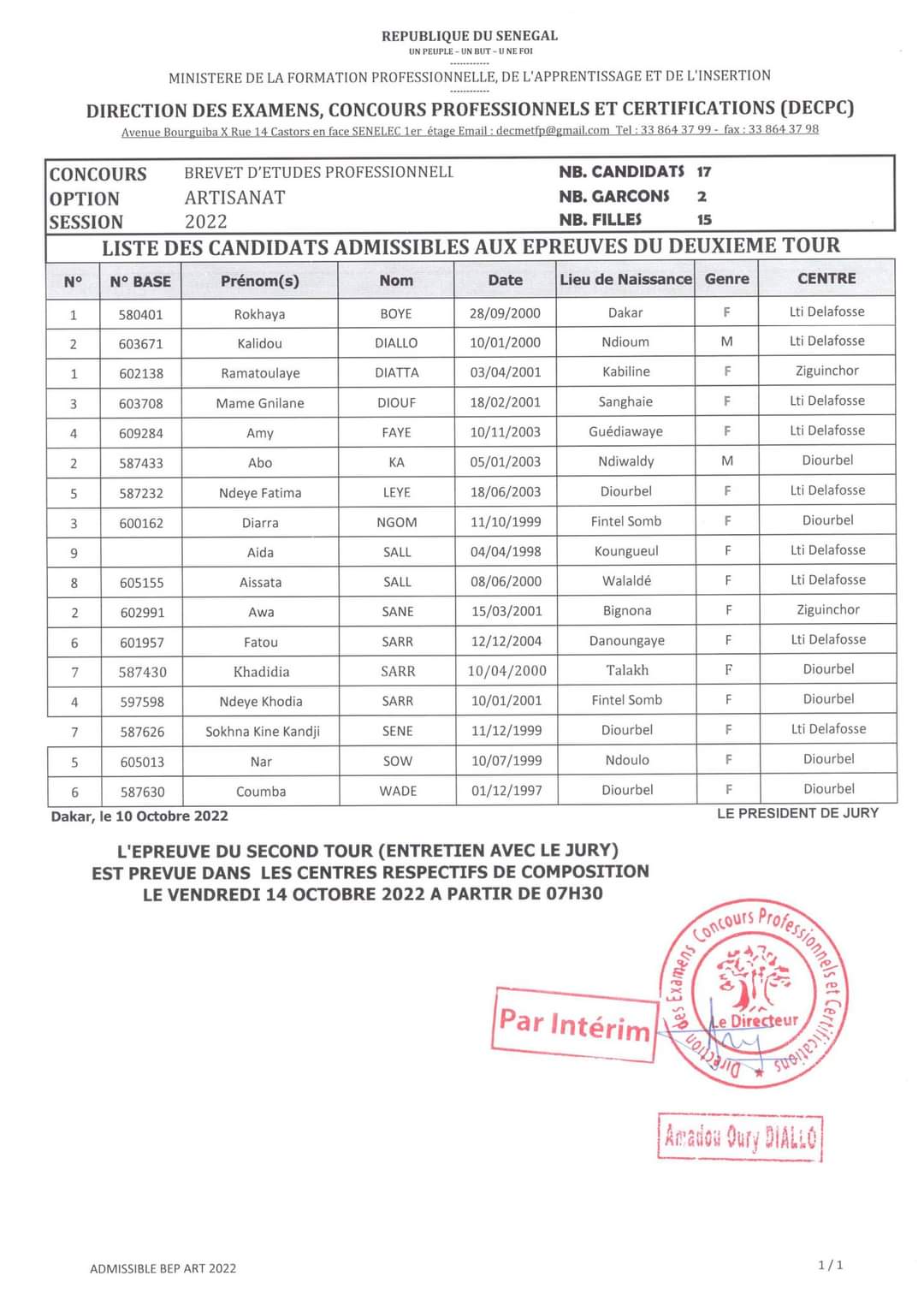 Reading: RESULTATS ADMISSIBILITE BEP ARTISANAT